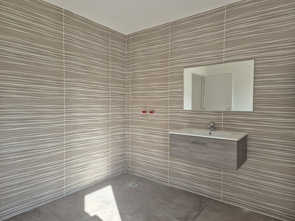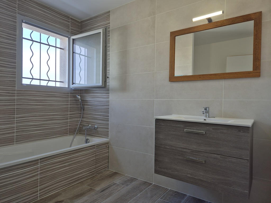 - SDB équipée avec faïence meuble vasque, baignoire et sèche serviette